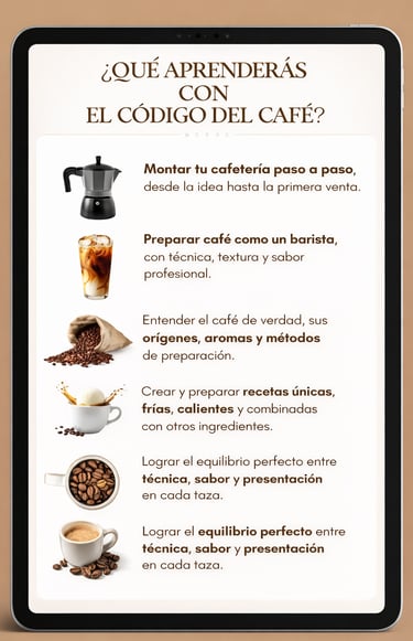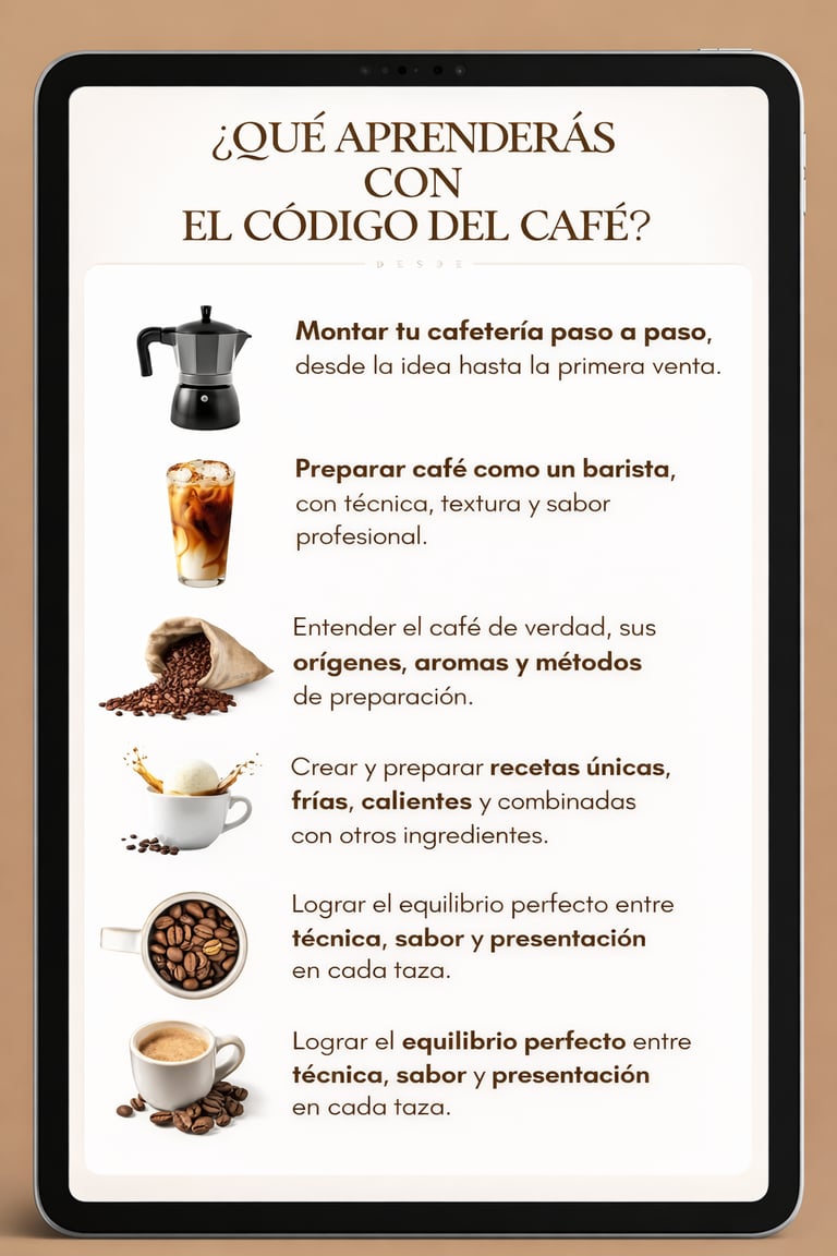 Aprovecha esta oportunidad para dominar el café como proceso, profundizar tu conocimiento desde el grano hasta la taza y aplicar el método de forma consciente, pråctica y profesional.